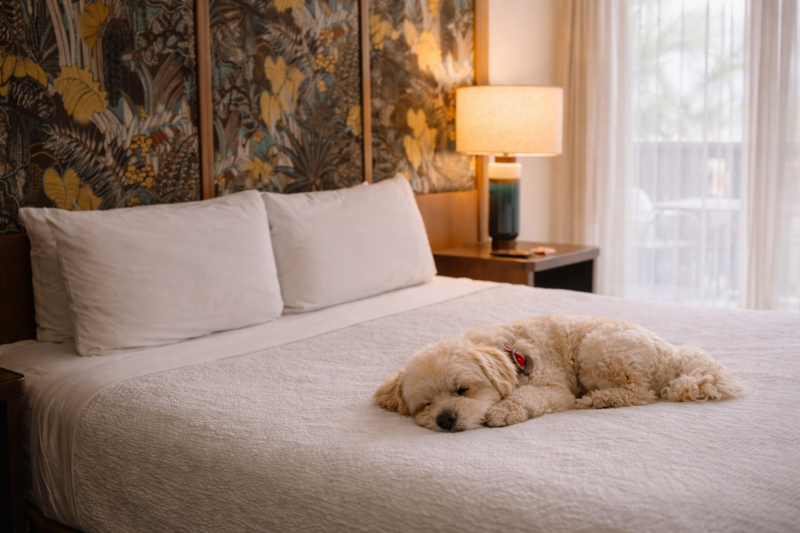 Every single room at White Sands Hotel has its own private lanai — a covered outdoor balcony where your dog can get fresh air without you having to leave the room. It’s a small thing that makes a big difference when you’re traveling with a pet.